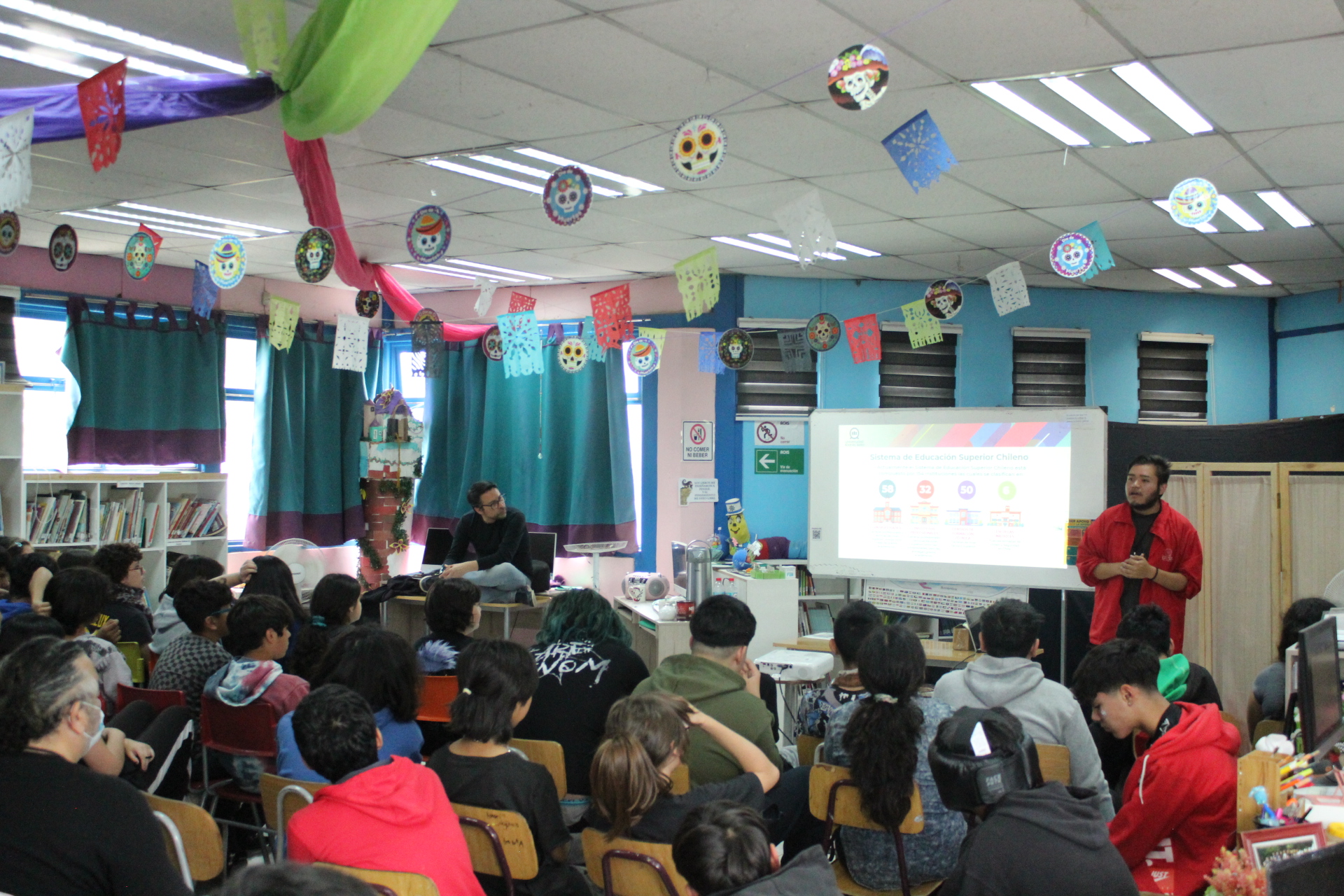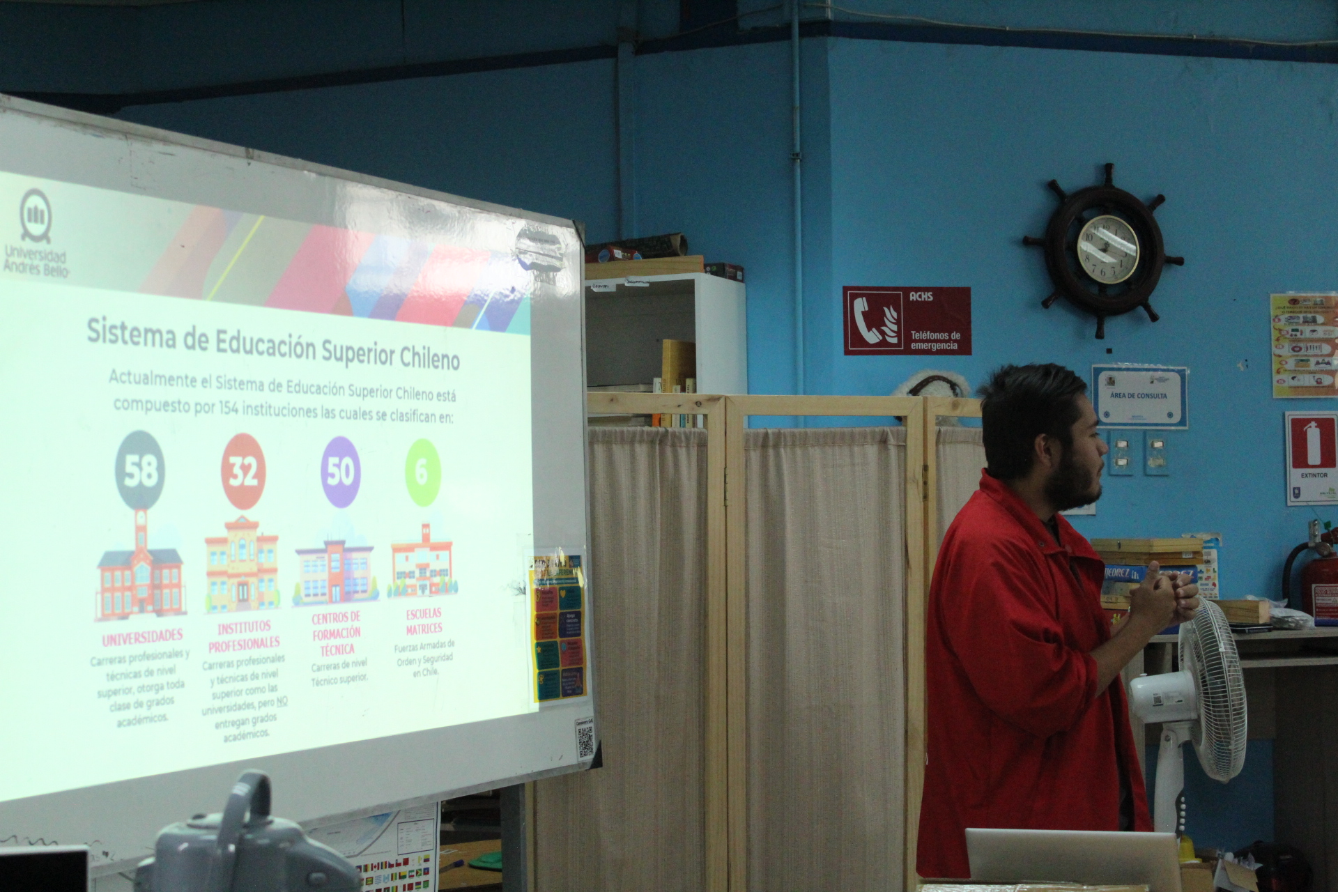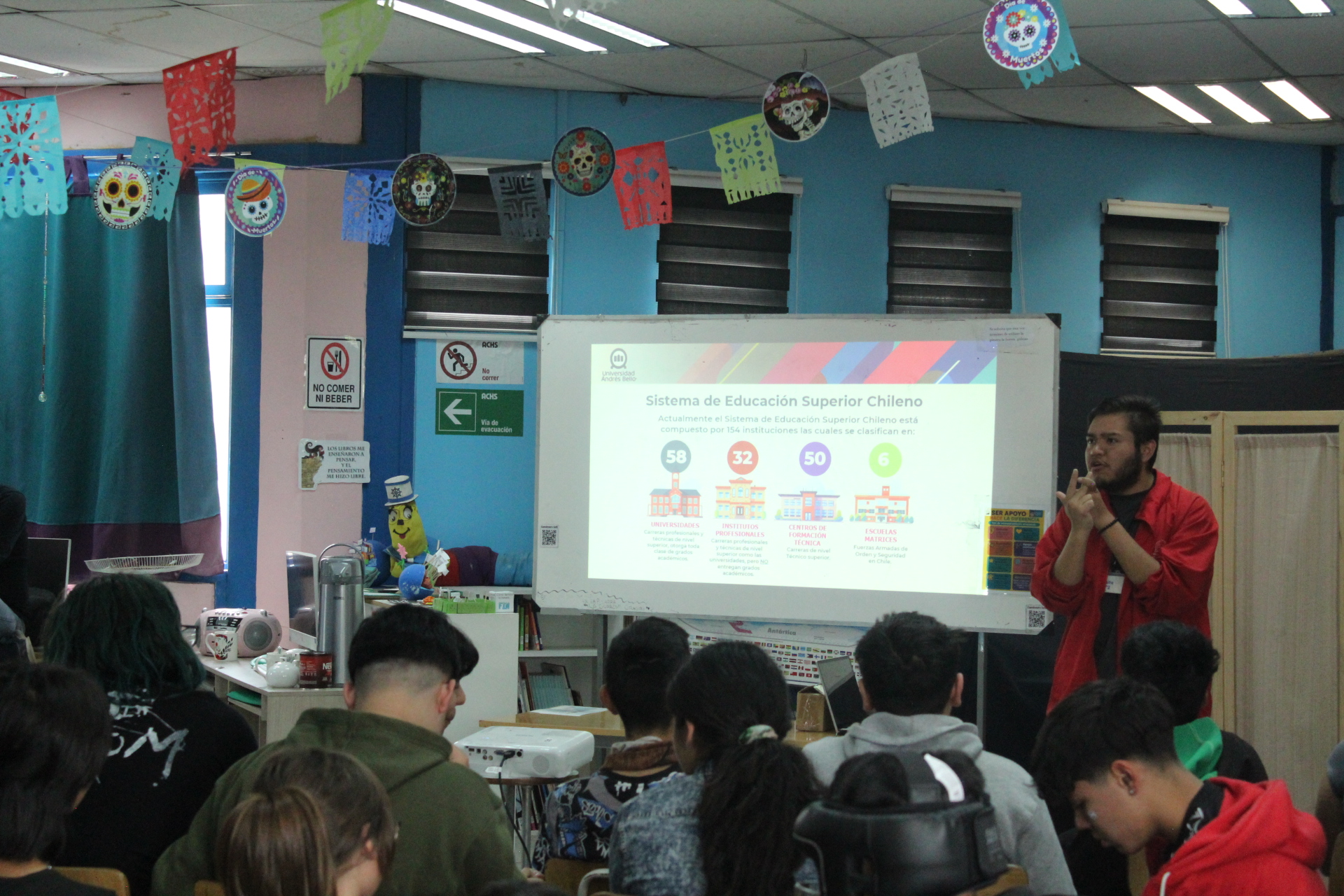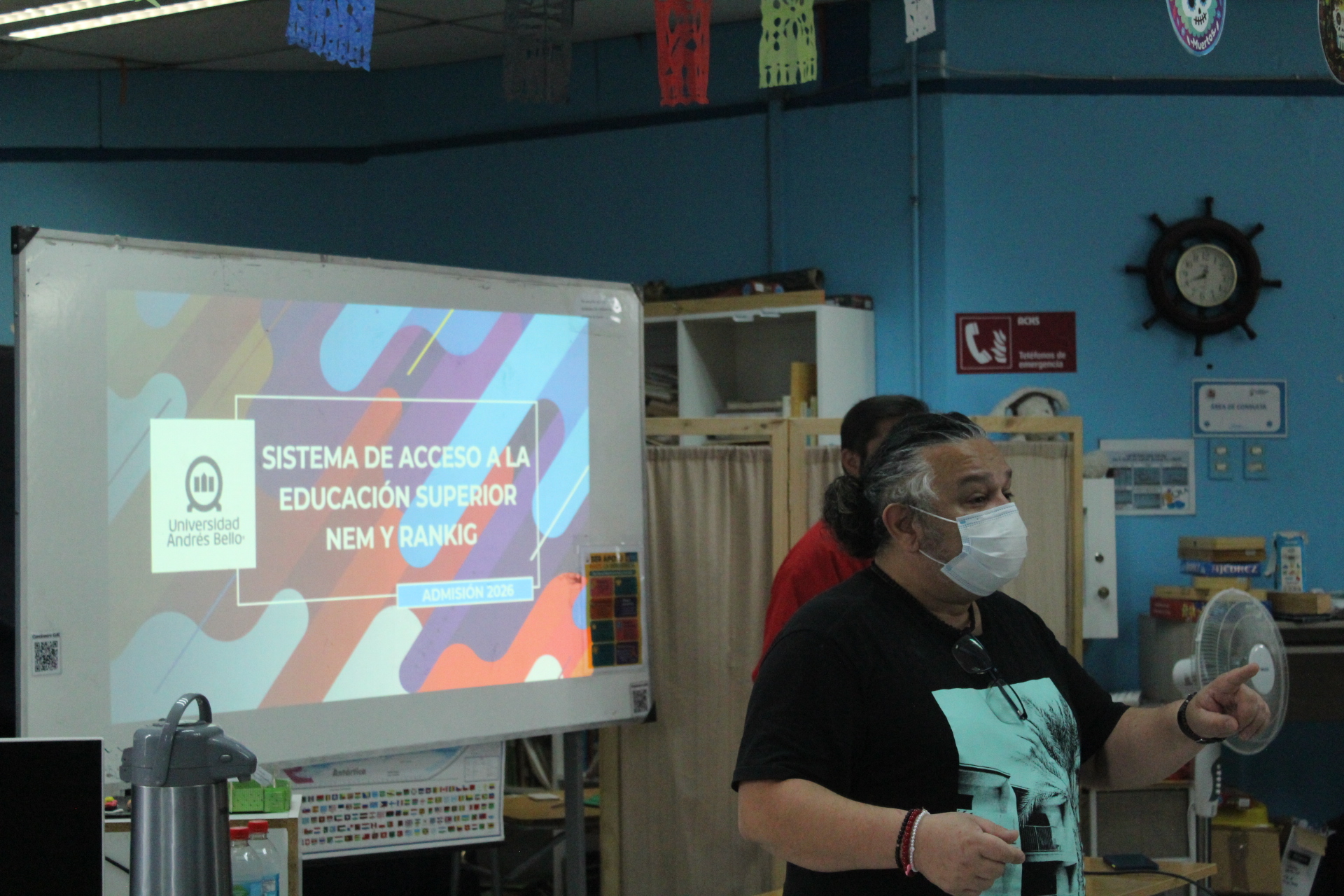 Este lunes 27 de octubre, fuimos visitados por el equipo de admisión de la Universidad Andrés Bello. En este marco, ambos octavos básicos de nuestro colegio pudieron recibir información y resolver dudas en torno al sistema de ingreso a la educación superior, enfocado específicamente en la importancia de mantener buenas notas para poder tener más opciones a la hora de postular, producto de los factores de NEM y ranking. Les compartimos imágenes de esta actividad gestionada por el profesor Pedro Martínez, quien conforma el equipo de orientación.